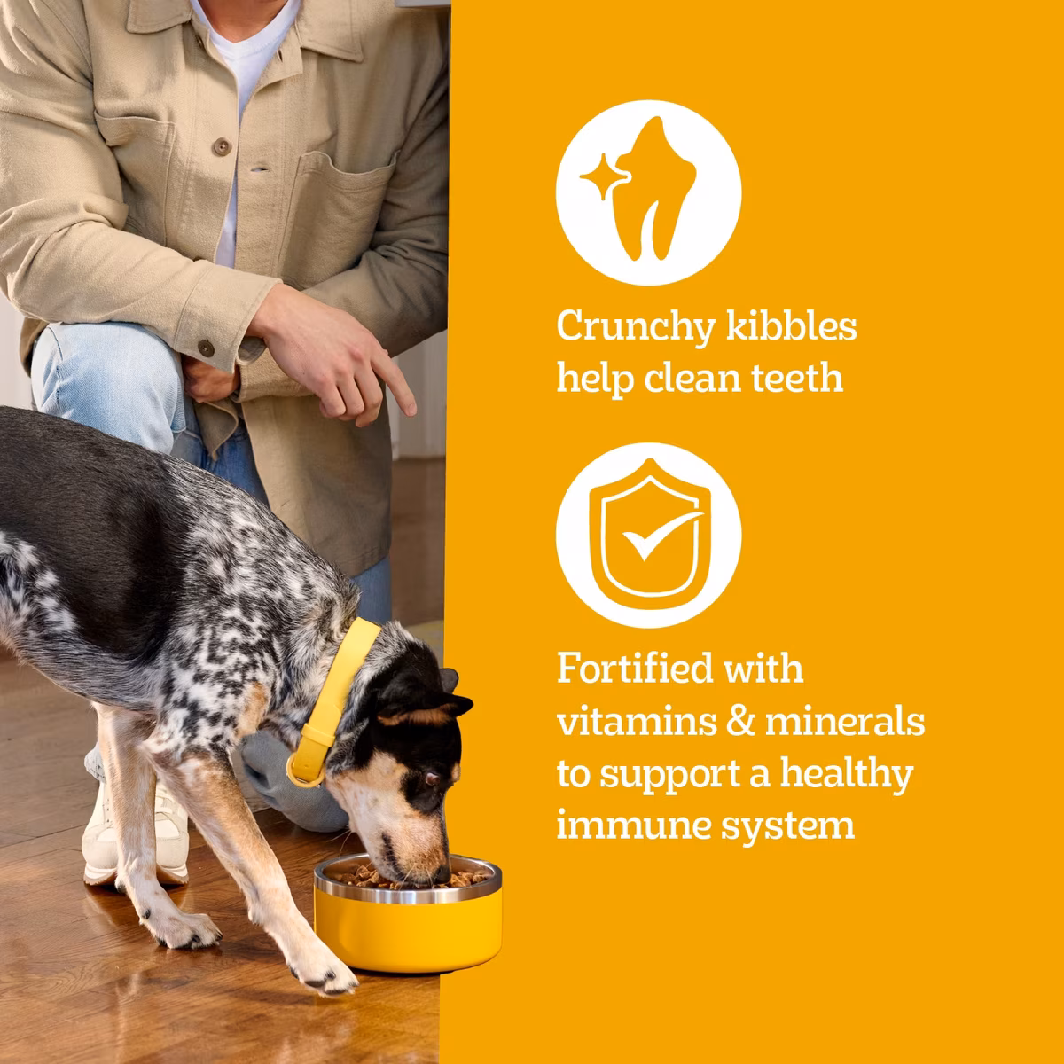 The crunchy kibble helps reduce plaque buildup and supports dental health by encouraging chewing.