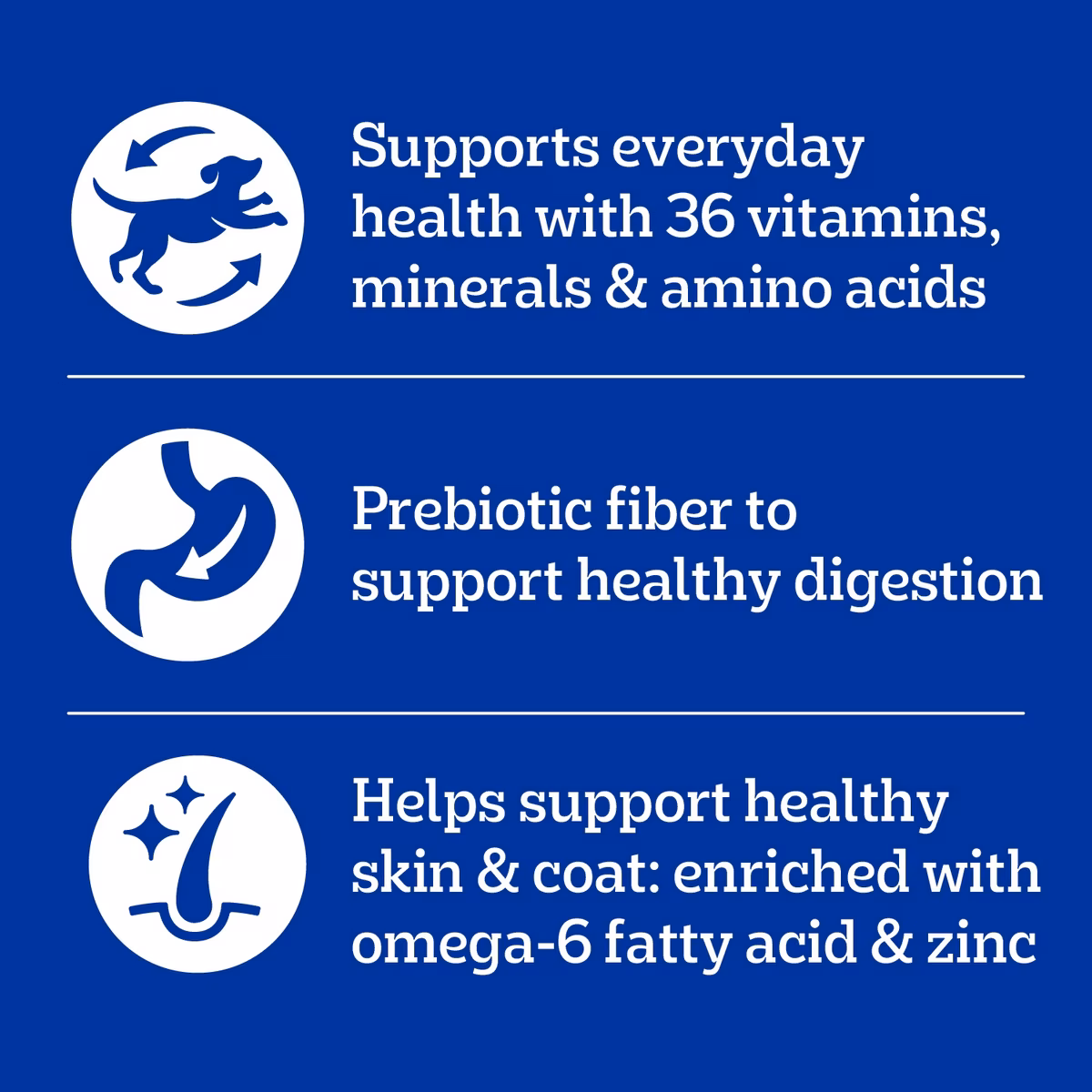 The formula is appropriate for adult dogs across different breeds and sizes.