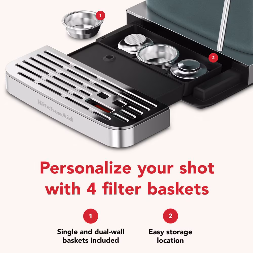 The Semi Automatic Espresso Machine with Burr Grinder – Juniper is a premium home coffee appliance designed to deliver café-quality espresso and milk-based drinks using freshly ground coffee beans. Manufactured by KitchenAid, this semi-automatic espresso machine combines a built-in burr grinder, powerful extraction system, and professional brewing tools to help users create espresso, cappuccino, latte, and other coffee drinks at home.