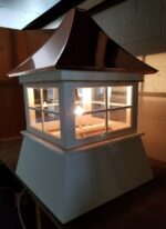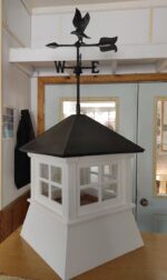 The cupola is typically available in sizes ranging from 18 inches to 26 inches at the base, allowing it to match various building sizes.