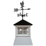 A decorative aluminum eagle weathervane sits on top of the cupola and rotates with the wind, showing wind direction while adding a classic rural design feature.